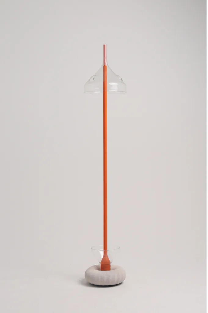 steel body and blown glass features.